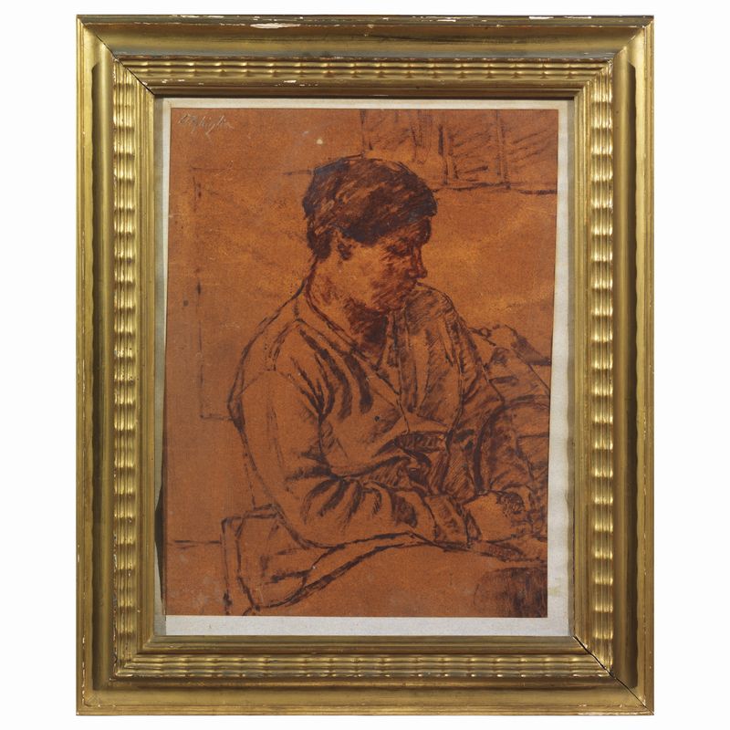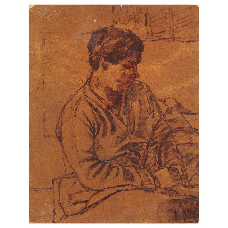 La donna ritratta da Ghiglia nell’opera presentata in catalogo è con ogni probabilità la moglie Isa, seduta e pensosa con la classica acconciatura raccolta. Nel dipinto è possibile individuare uno studio preparatorio per l’olio Donna seduta -L. Ghiglia e S. Zampieri (a cura di), Oscar Ghiglia. Catalogo generale. Dipinti, Cinisello Balsamo 2022, p.347, 536- databile al 1923, periodo in cui Ghiglia esprime la massima vicinanza alla lezione cézanniana unitamente alle suggestioni offerte dall’amico Modigliani.