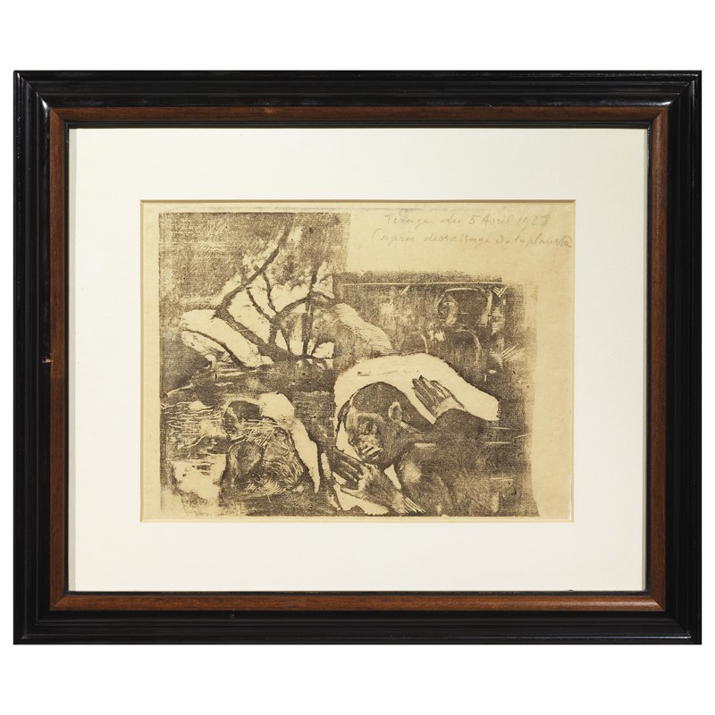Paul Gauguin (Parigi 1848 - Fatu Iwa 1903) a MANAO TUPAPAU (ELLE PENSE AU REVENANT) b DONNA MAORI NEL PAESAGGIO xilografia, a. cm 17x12,5; b. cm 22,5x13 / 24,5x34 iscritto in alto a destra "tirage du 5 avril 1928/ (après décrassage de la planche)"