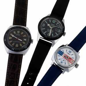 LOTTO DI TRE OROLOGI Un orologio Utina dalla cassa cromata, fondello in acciaio serrato a vite, ghiera girevole, [..]