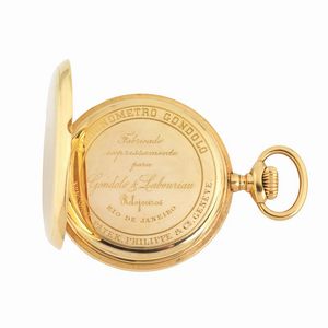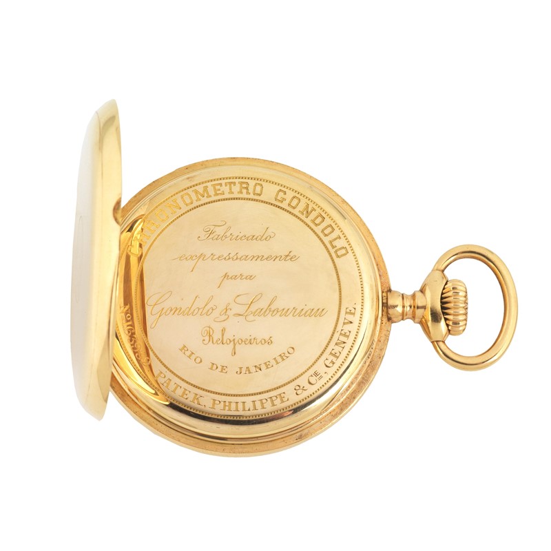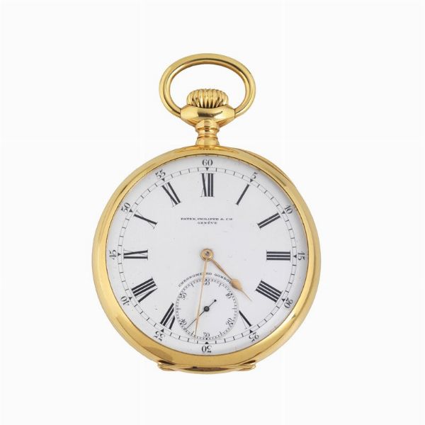 PATEK PHILIPPE & CIE GONDOLO OROLOGIO DA TASCA N. 2685XX cassa in due parti in oro giallo 18kt, fondello guilloché, quadrante bianco in porcellana, grafica nera, lancette a spada, numeri romani e arabi, secondi a ore sei, movimento a carica manuale n. 163932, gr. 130. Diam. mm 54 Orologio non funzionante. PATEK PHILIPPE & CIE GONDOLO YELLOW GOLD POCKET WATCH N. 2685XX