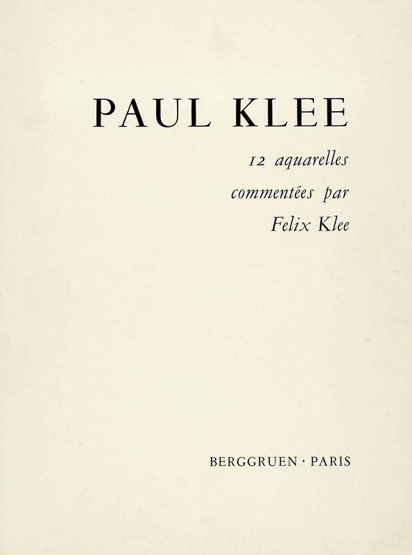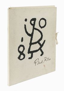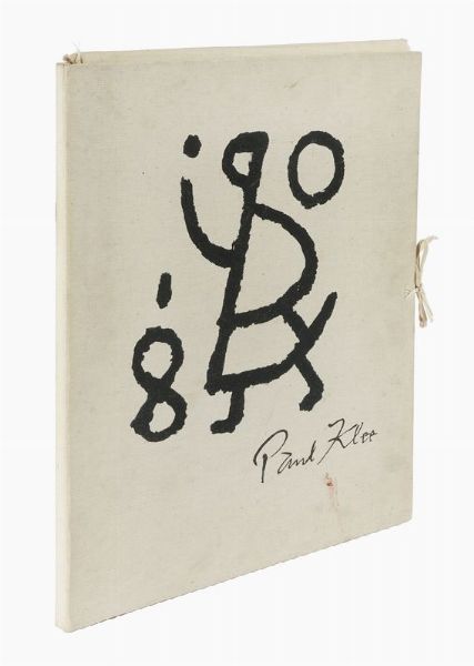 In-folio (mm 500x380). Esemplare a bifogli sciolti, con 12 acquerelli in facsimile di Paul Klee, applicati e fuori testo, ritoccati a pochoir e commentati da Félix Klee. Uno strappetto alla busta della lettera in facsimile della tavola 8, altrimenti ottima copia. Legatura in piena tela editoriale con alette, un disegno e la riproduzione della firma dell'Artista in nero al piatto anteriore. Ingiallimento ai piatti e al dorso, ma nel complesso buono stato di conservazione. Opera in 500 esemplari numerati.