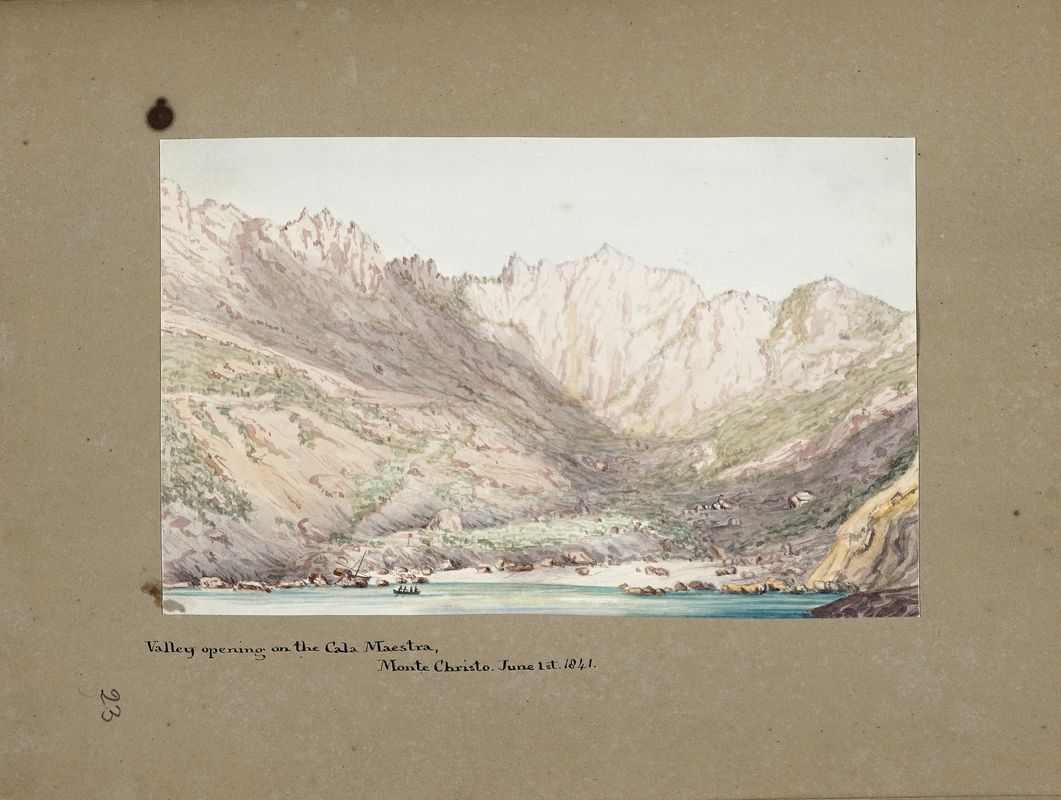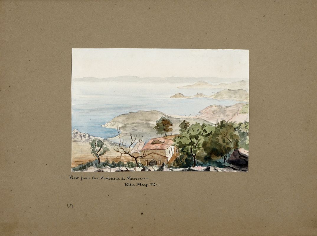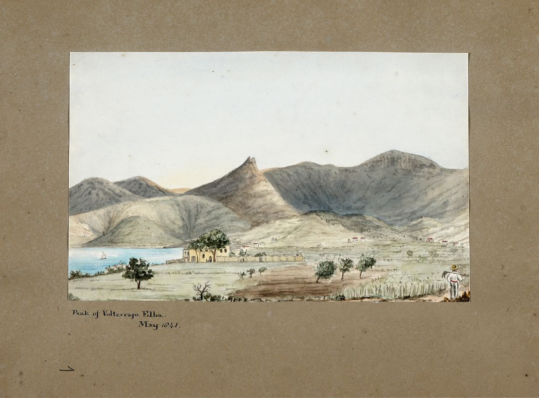 Album in 4° (mm 308x245). Raccolta di n. 80 disegni di vedute di città e isole italiane, a penna e inchiostro bruno, matita di grafite, pennello e acquerello a colori su carta color crema. Ogni foglio è applicato singolarmente, ai quattro angoli i più grandi e a pieno i piccoli, su pagine in carta color nocciola che costituiscono l'album. Sotto ciascun disegno, sulla pagina di supporto, a penna e inchiostro bruno è riportato il nome del luogo raffigurato, il mese e l'anno, in un solo disegno si legge la firma per esteso dell'autore. Le vedute raffigurano le seguenti località: Venezia, Bologna, Firenze, Pisa, Livorno, Isola d'Elba (21 vedute), Montecristo (9 vedute), Pianosa, Argentario, Acireale, Catania, Etna (22 vedute), Vesuvio (5 vedute). Legatura in mezza pelle coeva con punte, dorso con nervature e decori in oro, piatti e sgardie in carta marmorizzata. Waltershausen, geologo mineralogista, nato a Gottinga fu dal 1847 professore di mineralogia e geologia e direttore del museo di mineralogia e paleontologia dell'università della sua città. La sua fama è legata alla sua preminente attività scientifica riguardo i fenomeni vulcanici, si occupò approfonditamente dell'Etna, per questo dimorò in Sicilia dal 1834 al 1837 e di nuovo dal 1838 al 1843 per terminare i lavori sulla topografia, altimetria e geologia. Al secondo soggiorno in Italia risale la raccolta di questi suoi ricordi di viaggio nella quale particolare interesse rivestono le vedute delle isole e quelle dei vulcani.