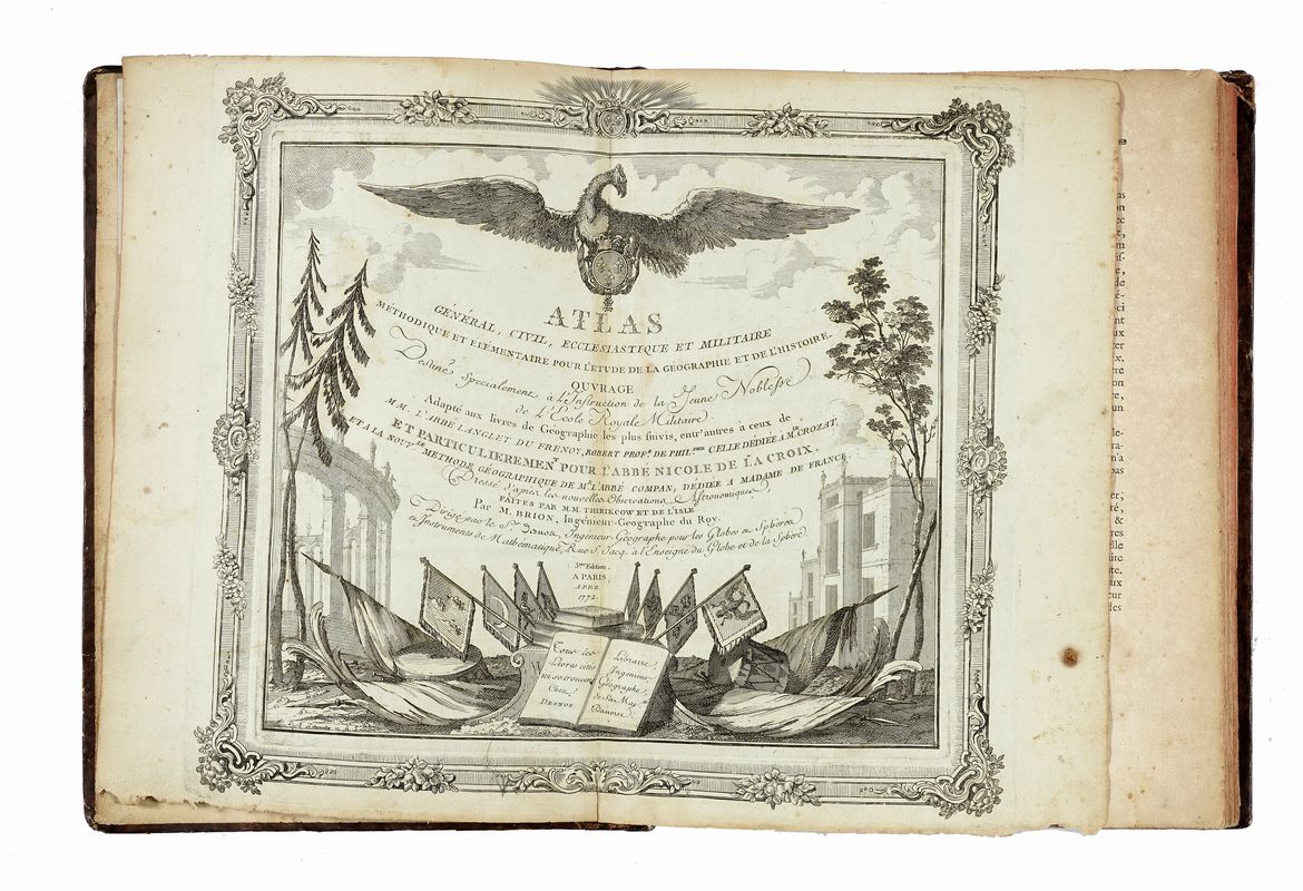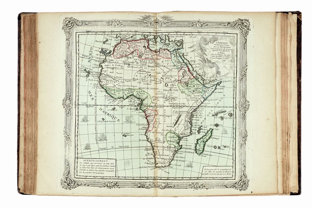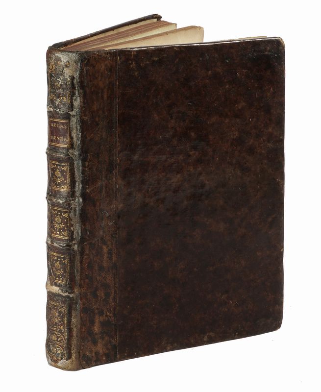 In-4° (mm 290x215). Pagine [2], 34 con un frontespizio calcografico doppio e 55 carte geografiche (di cui 53 a doppia pagina e 52 ripiegate) tutte in rame e coloritura. Legatura coeva rimontata in piena pelle con titoli e decorazioni impressi in oro ai comparti del dorso. Mancanze lungo le unghiature. Ex-libris di precedente proprietario al contropiatto anteriore.