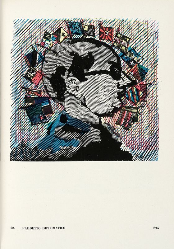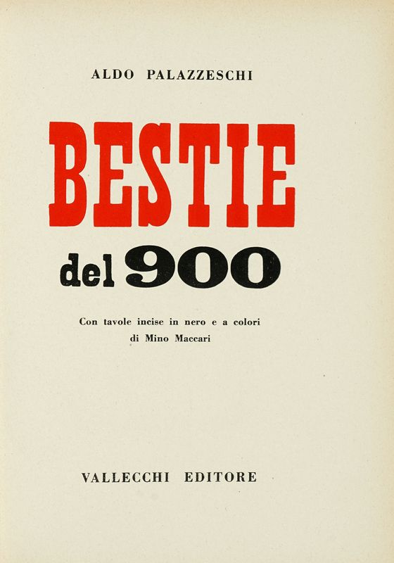 In-8° (mm 258x190). Pagine 164, [8] con 30 linoleografie a colori fuori testo e 16 illustrazioni in nero. Legatura editoriale in mezza tela, piatti in cartone illustrato; sovraccoperta editoriale con titoli e illustrazioni ai piatti. Uno strappo restaurabile al piatto anteriore, altrimenti ottima copia. SI AGGIUNGE: Maccari Mino, Il selvaggio [...] a cura di Carlo Ludovico Ragghianti. Venezia: Neri Pozza editore, 1959. In-8° (mm 240x165). Pagine 291, [3] con 134 tavole numerate 1-134 all'interno del testo, sia a colori che in bianco e nero. Frontespizio in rosso e nero. Copia perfettamente conservata. Legatura in tela editoriale azzurra con titolo impresso in oro al centro del piatto anteriore e del dorso. Sovraccoperta editoriale in cartone con titolo e riproduzione di un'opera di Maccari. Uno strappetto al margine inferiore della sovraccoperta, altrimenti buone condizioni. SI AGGIUNGE: Mino Maccari. Con testo critico di Roberto Longhi e Fogli da un taccuino di Mino Maccari. Firenze: Editore: Edizioni, 1948.