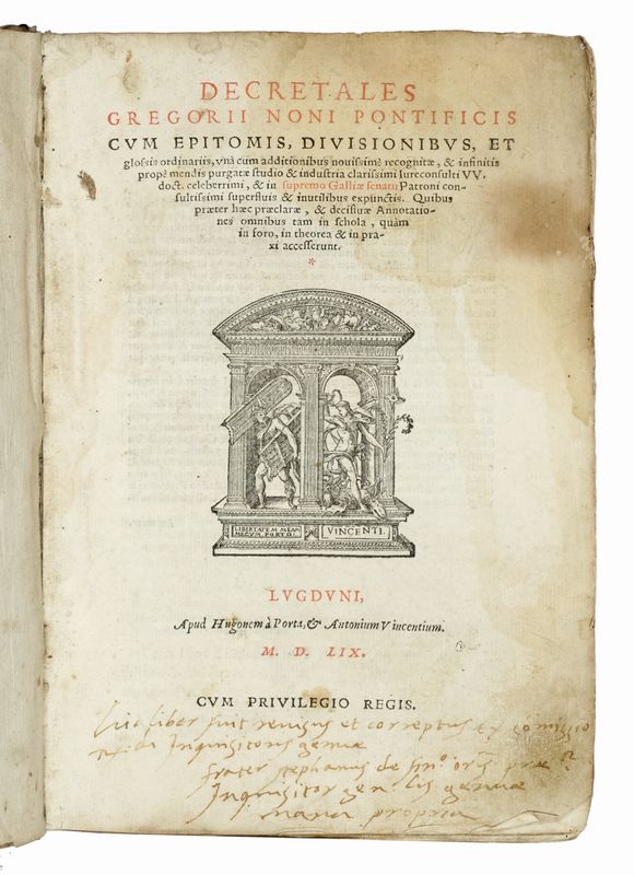 Lugduni: apud Hugonem a Porta, & Antonium Vincentium, 1559 (Al colophon:) Lugduni: excudebat Petrus Fradin.
