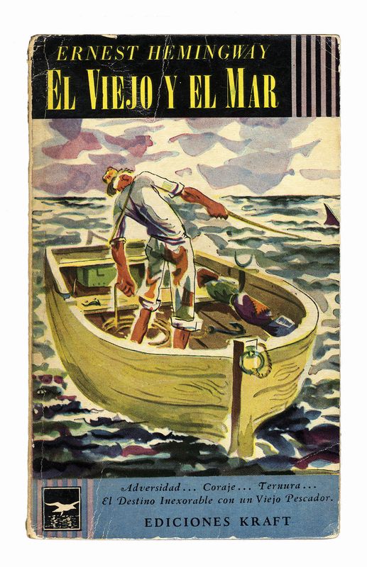 Dedica autografa a penna grigia, apposta sul frontespizio del libro El Viejo y el Mar, edizione argentina, datata 1954, del celebre The Old Man and the Sea (1951). Alcuni segni del tempo alla brossura.