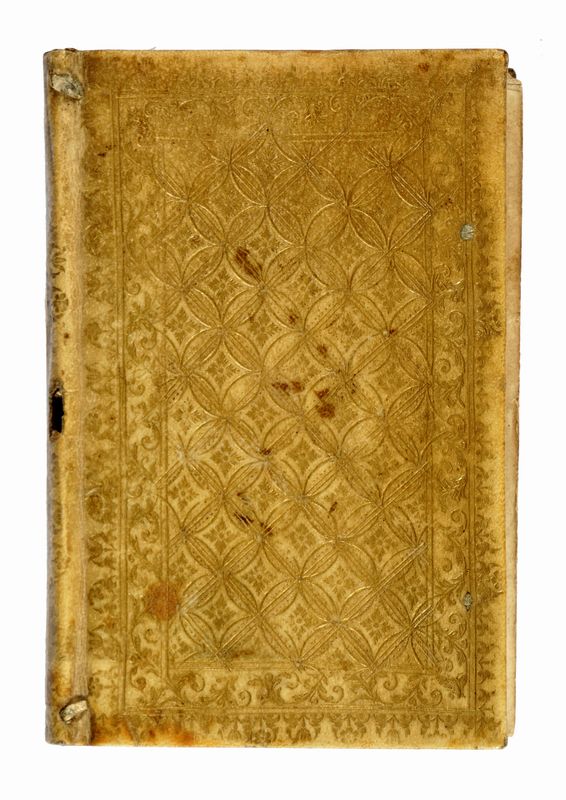 In-8° (mm 150x100). Pagine [32], 189, 1 bianca. Minime tracce d'uso, buono stato complessivo. Legatura coeva in piena pergamena con ferri dorati a motivo geometrico impressi su entrambi i piatti e al dorso, dove si trova anche il titolo manoscritto. Tagli in oro goffrati. Piccolissime mancanze in corrispondenza del dorso, macchioline. Si vende provvisto di permesso di esportazione.