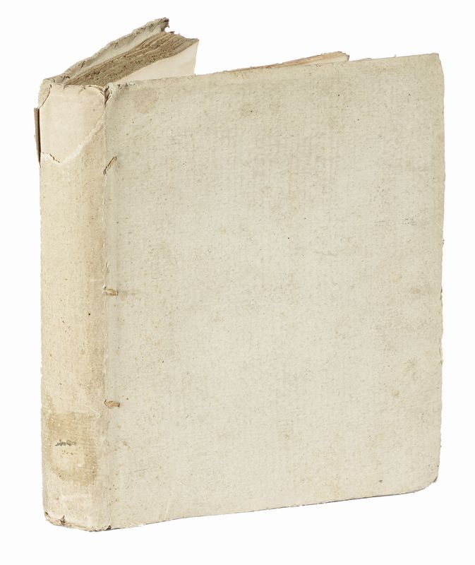 In-4° (mm 275x210). Pagine xvi, 489, [2], 1 bianca. Con quattro testatine incise in rame nel testo. Lieve usuale brunitura delle carte, sporadiche macchioline, per il resto opera completa e in barbe. Legatura coeva in pieno cartonato rustico. Assente una porzione della cuffia superiore.