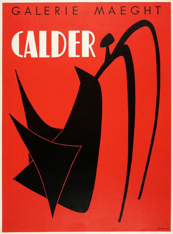 Manifesto stampato in litografia da Mourlot (mm 643x475) per la mostra di Alexander Calder del 1959 alla Galleria Maeght. SI AGGIUNGE: Galerie Maeght. Gouaches. Calder. Manifesto litografico (mm 755x536) stampato per la mostra dell'Artista alla Galleria Maeght del 1966. Entrambi in ottimo stato di conservazione.