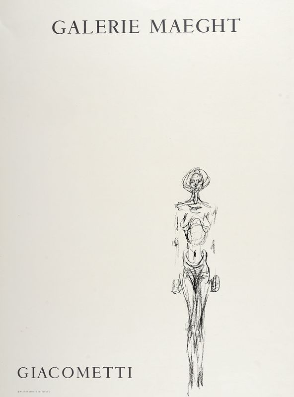 Manifesto litografico (mm 643x475) per la mostra di Alberto Giacometti del 1961 alla Galleria Maeght. SI AGGIUNGE: Galerie Maeght. 5 Peintres et 1 Sculpteu. Amable, Capdeville, Fromanger, Garache, Matieu, Gardy-Artigas. Manifesto litografico (mm 660x480) per la mostra del 1965. Un piccolo strappetto al margine superiore di quest'ultimo, altrimenti ottimo stato di conservazione.