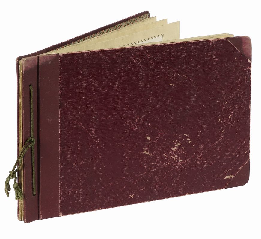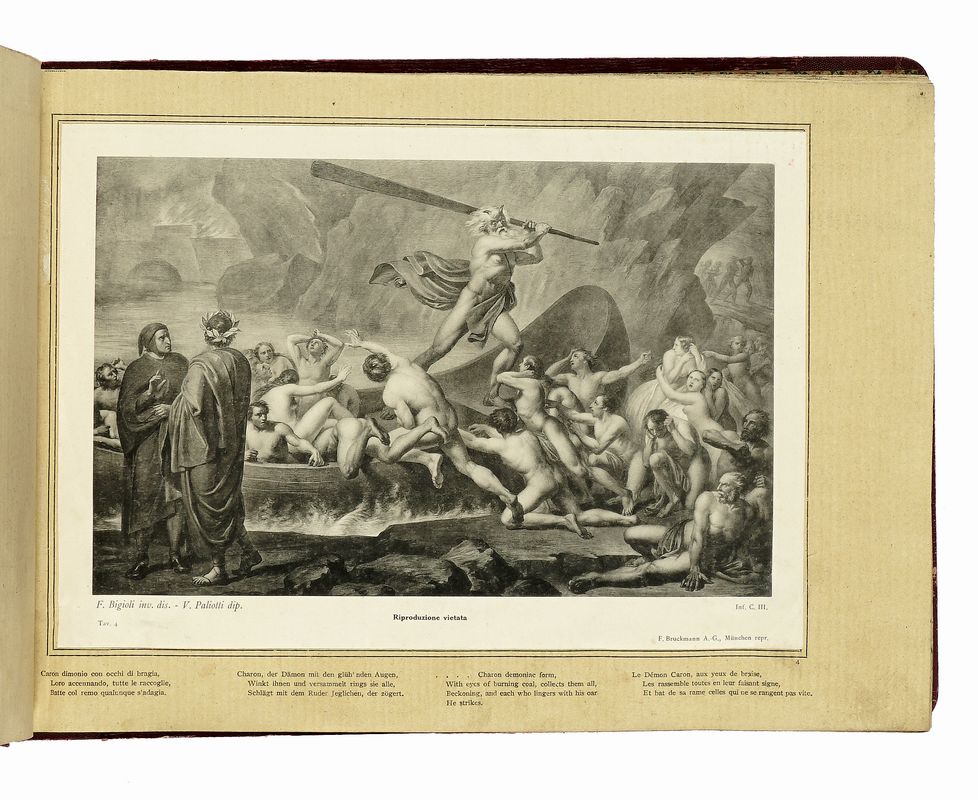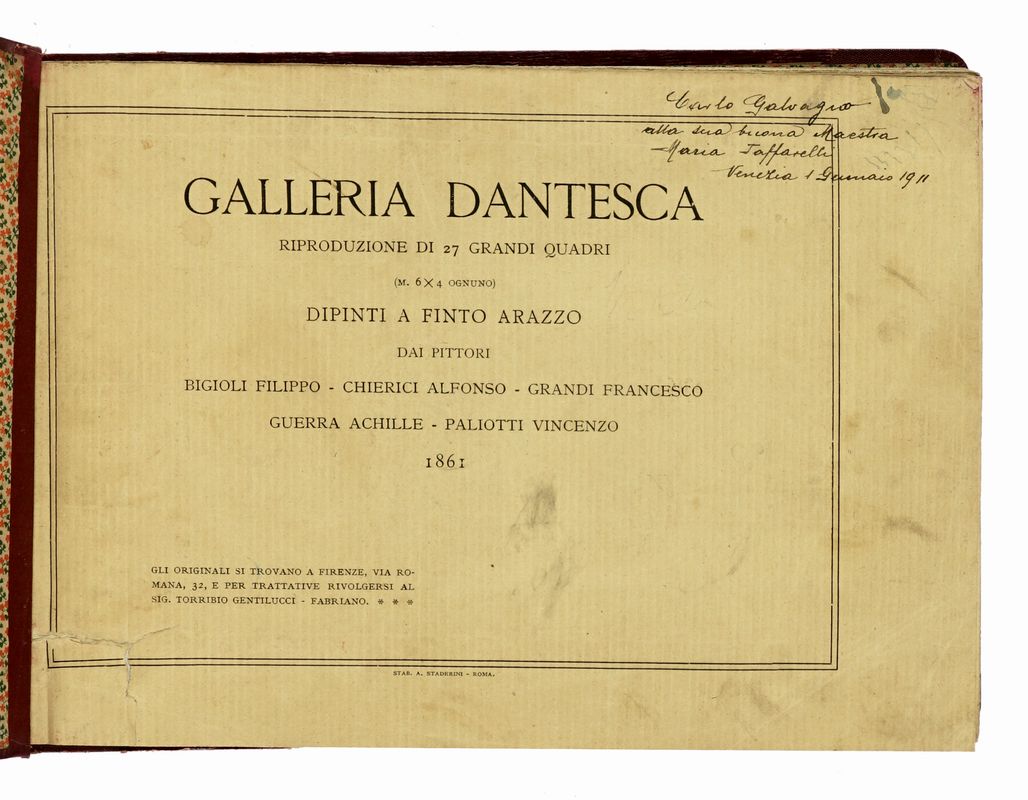 In-8° oblungo (mm 215x295). Con 1 carta di frontespizio e 27 incisioni applicate su supporti con didascalie in italiano, inglese, francese e tedesco. Alcune carte con strappi richiusi, incluso il frontespizio. Legatura in mezza tela rossa con punte e piatti in percallina rossa. Sguardie in carta decorata. Alcune mancanze in corrispondenza ai piatti. Nota di possesso manoscritta al frontespizio, datata 1911.
