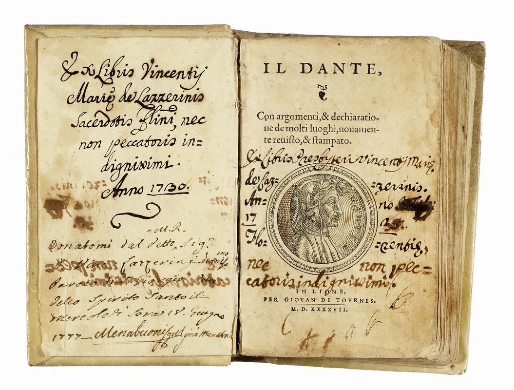 In-16° (mm 123x75). Pagine 539, [3]. Medaglione con ritratto dell'Autore inciso in legno al frontespizio e marca tipografica in fine, testatine e capilettera xilografici. Leggere fioriture sparse, l'ultimo centinaio di pagine gorate. Legatura successiva in piena pergamena rigida con titolo manoscritto al dorso. Note di possesso manoscritte al frontespizio e alla carta di guardia anteriore.