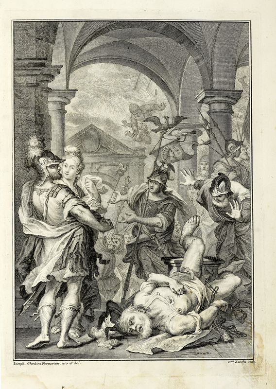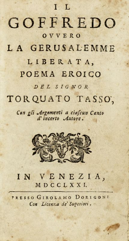 In-12° (mm 154x87). Legatura coeva in mezzza pelle con piatti in carta marmorizzata e titoli in oro al dorso. SI AGGIUNGONO: Roncaglia Costantino, Le moderne conversazioni volgarmente dette de’ Cicisbei... Lucca: per Leonardo Venturini, 1736. Marmontel Jean Francois, Belisario [...] trasportato in italiano. Venezia: per Luigi Pavini, 1768. Varano Alfonso, Giovanni di Giscala tiranno del tempio di Gerusalemme. In Venezia: apresso Pietro Valvasense, 1754.