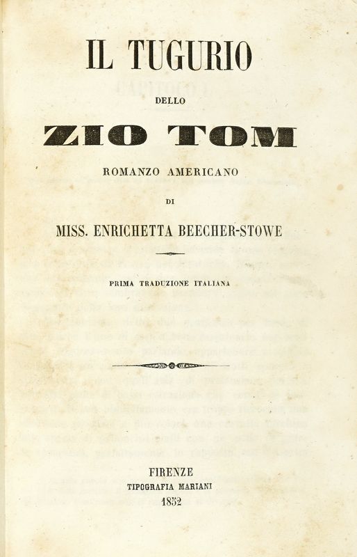 Prima edizione italiana, Firenze: Tipografia Mariani, 1852.