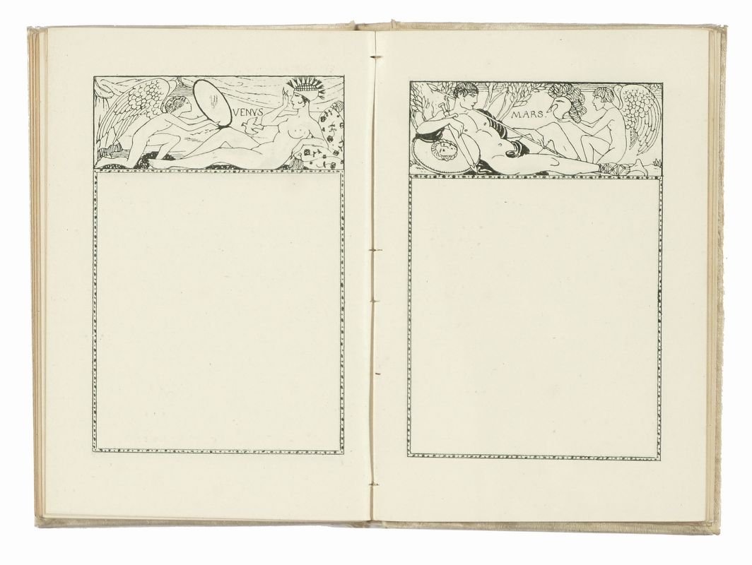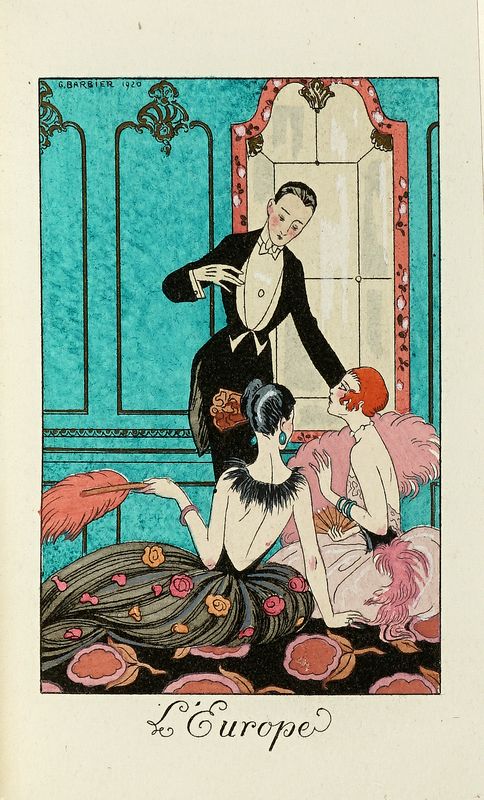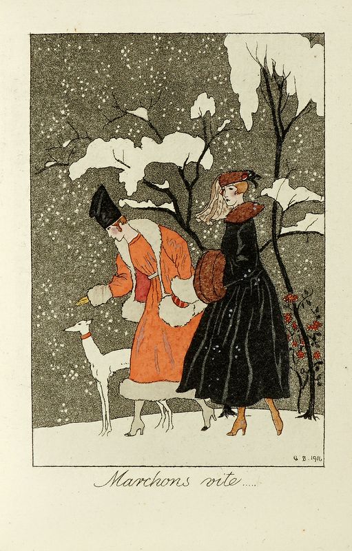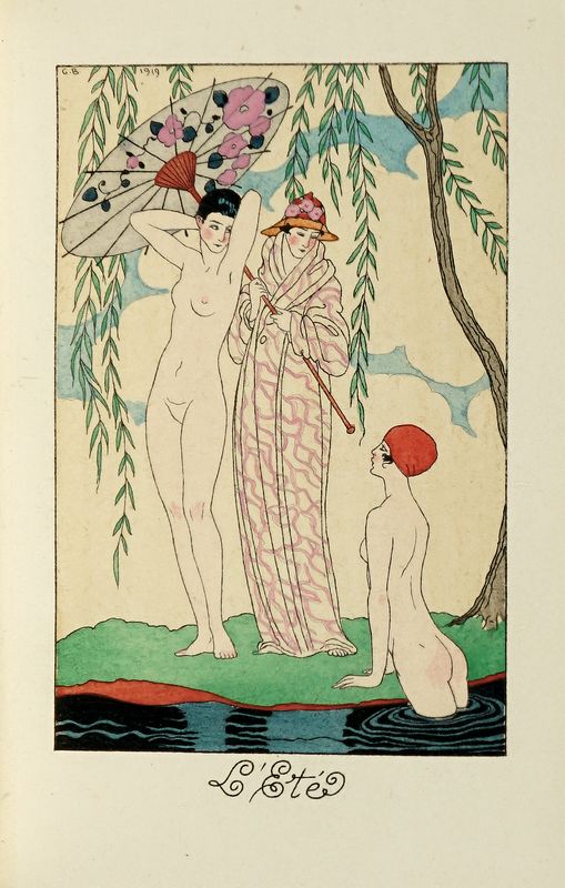 5 volumetti in-16° (mm 117x77). Con, complessivamente, 31 tavole fuori testo, incise e colorate da George Barbier. Ogni volume include un calendario e pagine per appunti illustrate con numerose vignette, anche a piena pagina, nel testo. Rinforzi al margine interno di rare pagine al secondo volume, altrimenti ottima copia. Legature originale in seta, finemente illustrate ai piatti e al dorso, con sguardie in carta decorata (ad eccezione del primo volume) e tagli dorati. Ciascuna protetta da involucro di plastica trasparente; parzialmente staccato al dorso del primo volume. Mancanti le sovraccoperte e il cofanetto originale, qui sostituito con un cofanetto in plexiglass su misura. Dedica autografa di Albert Flament al recto della prima carta bianca al secondo volume.