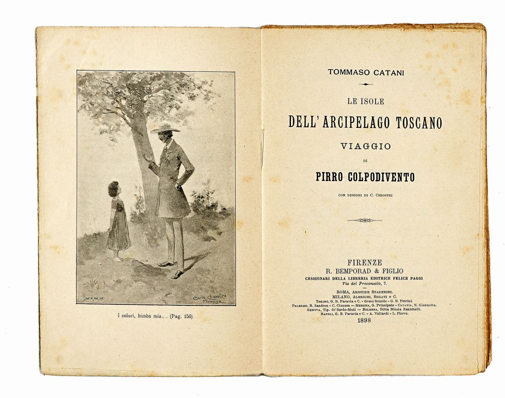 In-8° (mm 194x126). Con un disegno di Carlo Chiostri in antiporta e numerose illustrazioni nel testo. Usuali fioriture della carta, altrimenti buona copia in barbe. Brossura editoriale con titoli e illustrazione entro cornice tipografica al piatto anteriore; titoli al dorso. Quest'ultimo con difetti e mancanze.