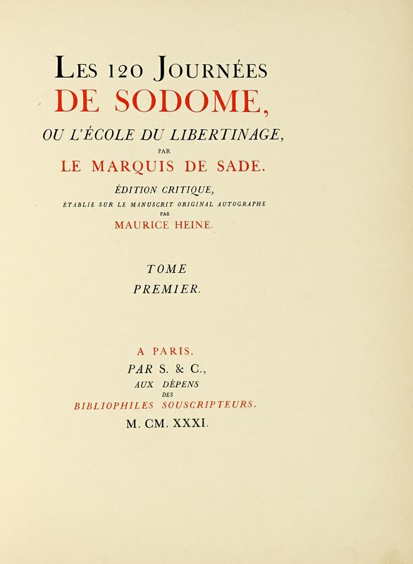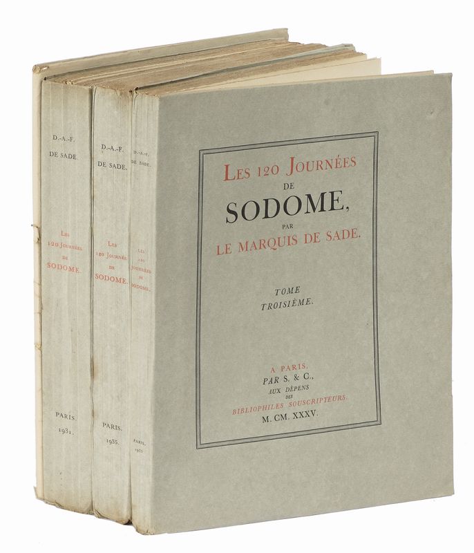3 volumi di testo in-8° (mm 270x205) e 1 volume di tavole in-8° (mm 275x215). Pagine XVI, 218; [5], 220-401, 1 bianca; [7], 406-496, [3]. Frontespizio in rosso e nero. Leggermente allentati internamente, altrimenti in ottima conservazione. Esemplare arricchito da 1 volume di tavole, contenente 1 frontespizio, 1 colophon e una suite di 16 litografie di accompagnamento al testo in bianco e nero sciolte, attribuite ad André Collot. Rare macchiette marginali ad alcune tavole, altrimenti ottimo stato di conservazione. Uno dei 150 esemplari su vélin teinté, su una tiratura complessiva di 175, riservati agli abbonati. Tutti i volumi in brossura editoriale con sovraccoperta protetta da velina, con titoli in nero e rosso al piatto anteriore e al dorso di quelli di testo; muta quella di tavole. Lievi mancanze alla velina e altre minime mende, ma nel complesso ottima conservazione. Uno dei 300 su papier vélin de Rive à la forme & filigrané specialement, su una tiratura complessiva di 396 esemplari.