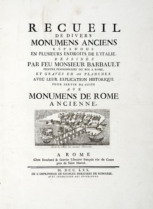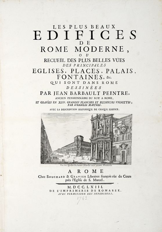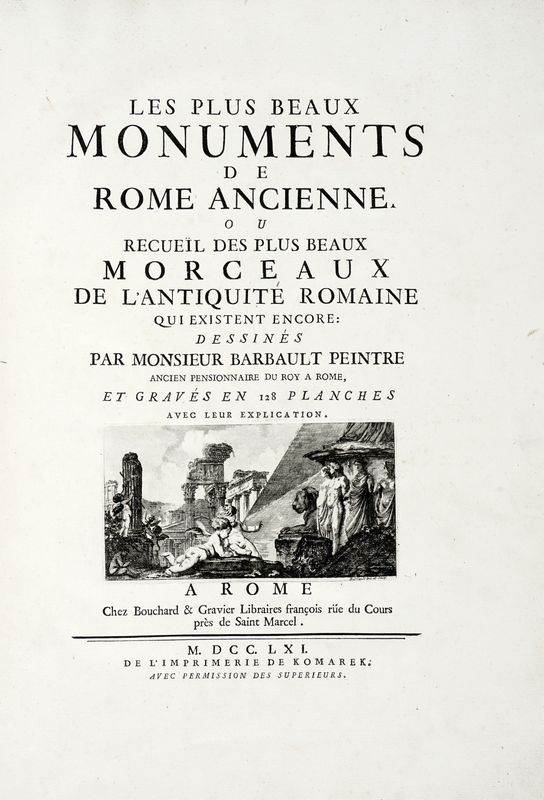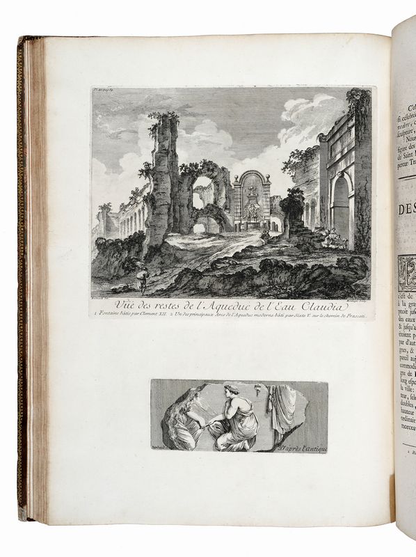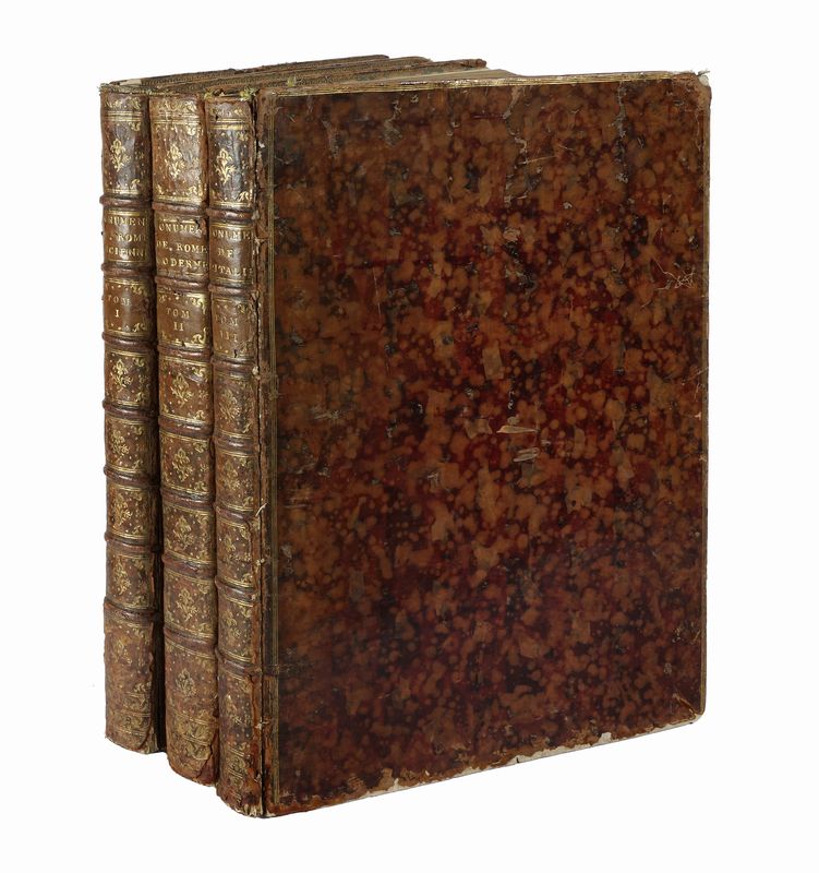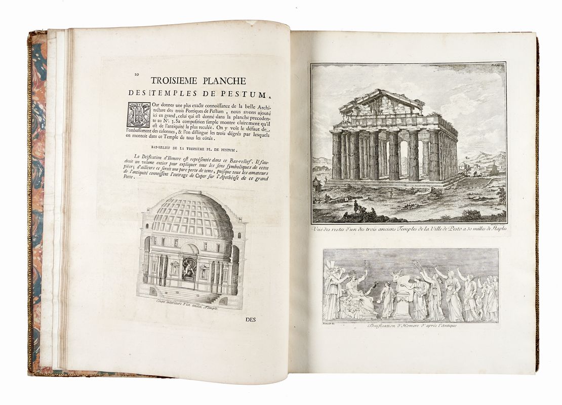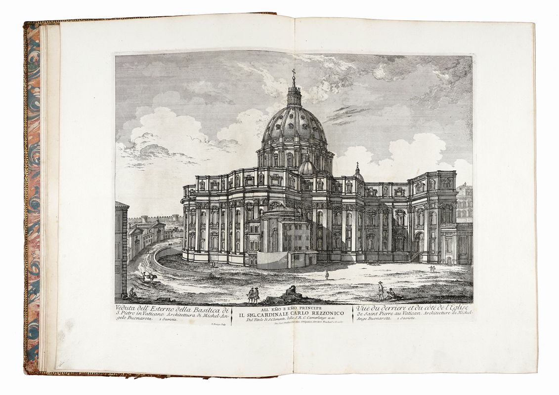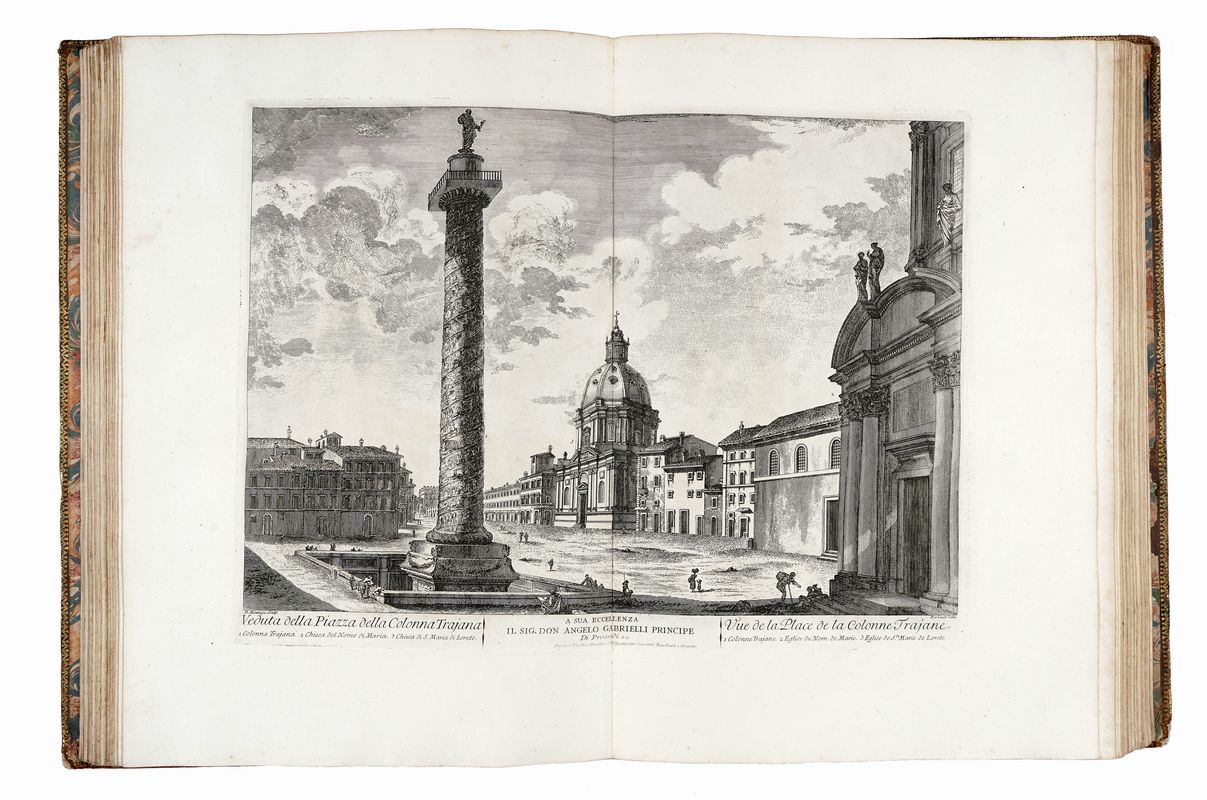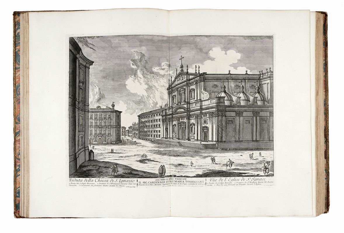 3 volumi in folio massimo (mm 517x365). Pagine VIII, 90 + 73 tavole fuori testo numerate I-LXXIII; [6], 72 + 44 tavole fuori testo a doppia pagina; [6], 54 + 104 tavole fuori testo impresse su 90 carte. Con, nel complesso, 221 tavole a piena o doppia pagina fuori testo, tutte splendidamente impresse, oltre a innumerevoli rami con scorci e vedute nel testo. Occasionali e lievi bruniture, ma nel complesso ottimo esemplare, fresco, marginoso e completo secondo gli Indici di ciascun volume. Legatura coeva in pieno vitello spugnato con titoli impressi in oro al dorso. Sguardie in carta marmorizzata, tagli dorati. Mancanze lungo le cerniere. Ex-libris di precedente proprietario al contropiatto anteriore.