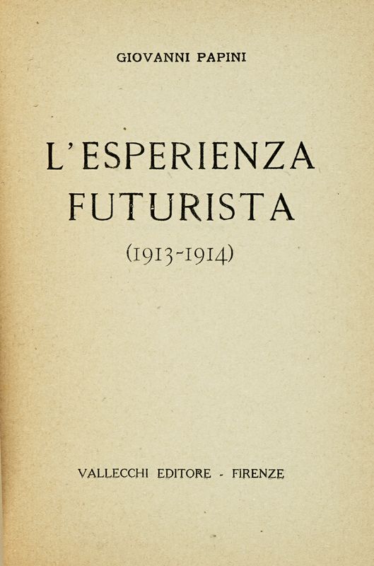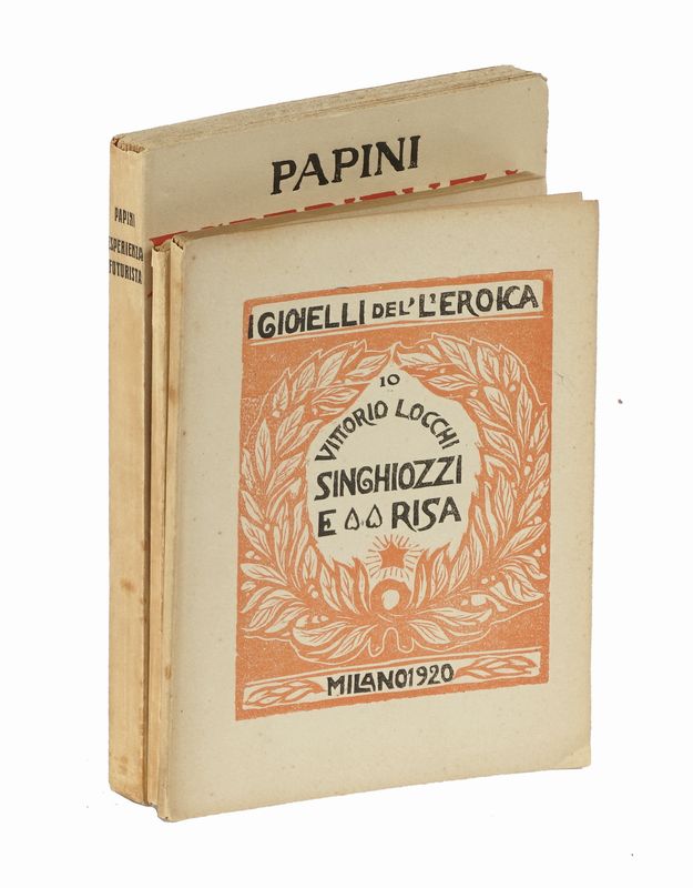 In-8° (mm 200x135). Pagine 176, [4], 8 di catalogo Vallecchi. Esemplare in barbe, perfettamente conservato. Brossura editoriale originale impressa a due colori. SI AGGIUNGONO: Locchi Vittorio, Singhiozzi e risa (I gioielli del'L'Eroica). Milano: L'Eroica, 1920. Id., La sveglia e il testamento (I gioielli del'L'Eroica). Milano: L'Eroica, 1928.