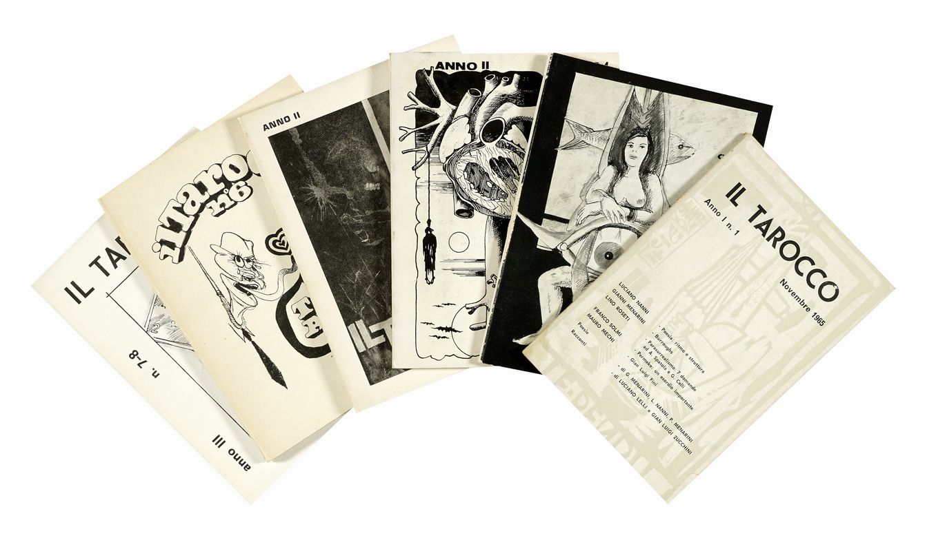 15 numeri in 13 volumi in-8° (mm 207x130 ca.). Dal n. 0 anno I, 1985 (2 copie) al nn. 9/10/11 anno XV, 2001. Presenti, inoltre, i nn. 16 e 18 rispettivamente dell'anno XX (2006) e XXIII (2009). Tutti in brossura editoriale con titoli al piatto anteriore e al dorso. Minimi difetti ai dorsi di alcuni volumi, altrimenti ottimo stato di conservazione. SI AGGIUNGE: Parol 13. Quaderni d'arte. Marzo 1997. Bologna: Book editore, 1997. Con un lettere manoscritta di Rosetta Berardi a Luciano Nanni applicata al verso di pag. 183. Ottime condizioni. SI AGGIUNGE: Il Tarocco. Trimestrale di letteratura e arte. Bologna: s.e., 1965-1968. 8 numeri in 6 volumi in-8° (mm 204x138). Compongono il lotto: il n. 1, anno I, novembre 1965; il n. 2, anno II, aprile 1966; nn. 3-4, anno II, ottobre 1966; n. 5, anno II, giugno 1967; n. 6, anno III, 1968; nn. 7-8, anno III, 1968.