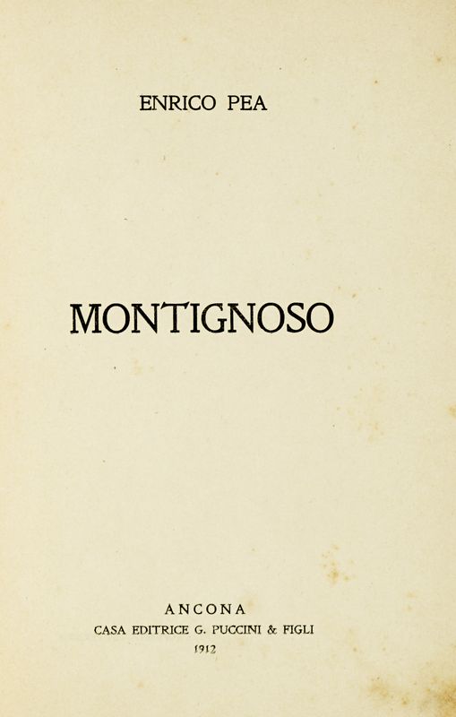In-4° (mm 240x165). Pagine 113, 3 bianche. Lievissime fioriture, per il resto stato conservativo ottimo. Brossura editoriale originale impressa a più colori a firma Lorenzo Viani. Mancanze in corrispondenza del dorso.