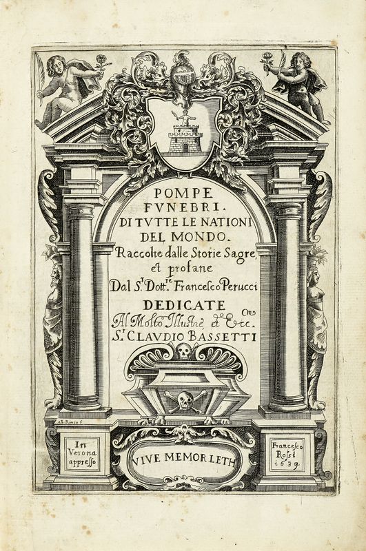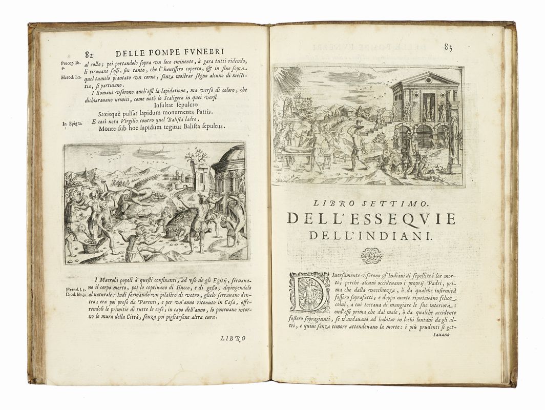 In-4° (mm 285x190). Pagine [8], 97, [1]. Frontespizio architettonico inciso in rame e numerose figure nel testo, oltre a testatine, capilettera e finalini. Esemplare fiorito, altrimenti buona copia. Legatura in mezza pelle, con titoli in oro al dorso. Abrasioni al dorso e macchie ai piatti.