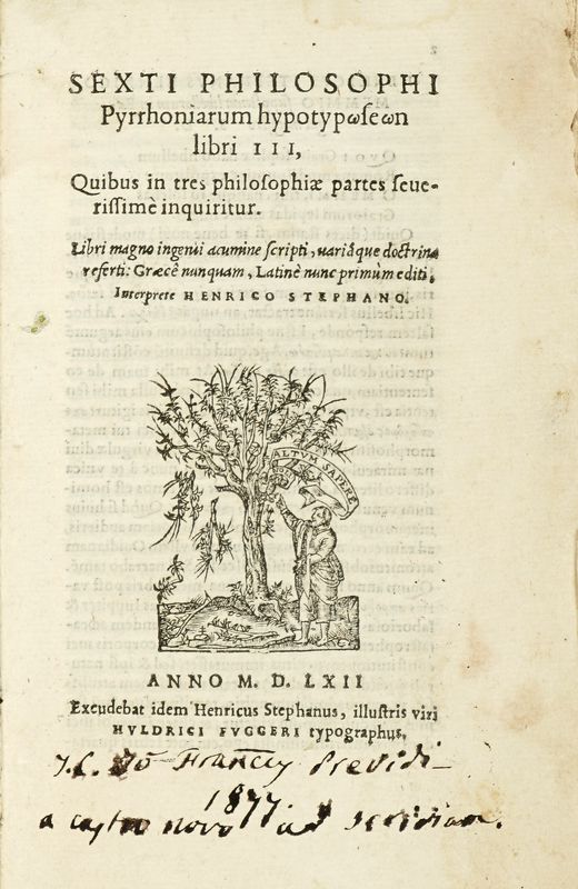 In-8° (mm 175x110). Pagine 288. Marca xilografica al frontespizio e iniziali in legno. Gore e tracce di umidità marginali, ma nel complesso buone condizioni di conservazione. Legatura coeva in piena pergamena, con titoli manoscritti al dorso. Macchie e difetti ai contropiatti. Annotazione di ottocentesca mano al frontespizio.