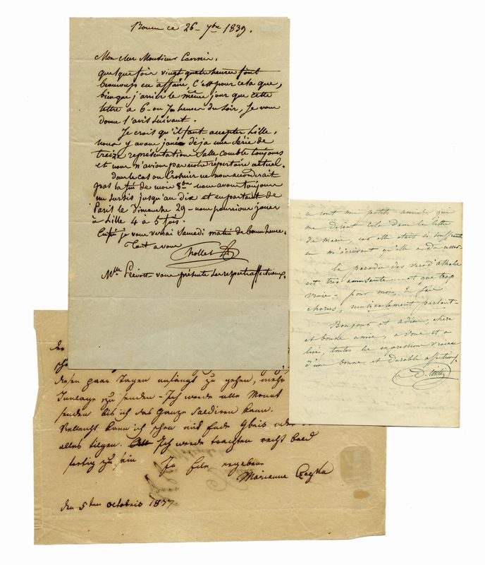 Documenti inviati ad Anton Diabelli, agli editori Artaria, Haertel, Giovanni e Giulio Ricordi, a Luigi Cherubini, agli impresari Canedi e Lanari, ad Aldo Noseda, Franco Fano, Giovanni Tebaldini, Adriano Lualdi ecc. Dimensioni varie.