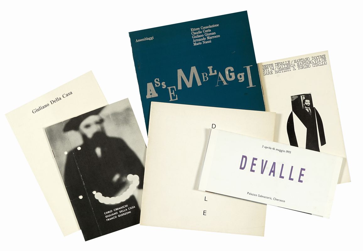Compongono il lotto: 1) Devalle Beppe, Nomi blasfemi. Ferrara: SATE, 1996; 2) DEVALLE. Palazzo dei Diamanti 19 marzo-11 aprile 1976; 3) Romano Giovanni, DEVALLE. S.l.: Fratelli Pozzo, 1971; 4) Giuliano Della Casa. S.l.: Pari editori & dispari, s.d.. 5) Assemblaggi. Milano: Edizioni Electa, 1988; 6) Arte e Cinema. Per un catalogo del cinema d'artista in Italia, 1975-76... Milano: Arti Grafiche milanesi, 1976; 7) Guerini Giampaolo, Lo stato del dove. New York: Too Late Press, s.d. [i.e. 1990 ca]; 8) Xerra William, Malinconia. Milano: Edizioni del mercato del Sole, 1983. Elenco completo disponibile su richiesta.