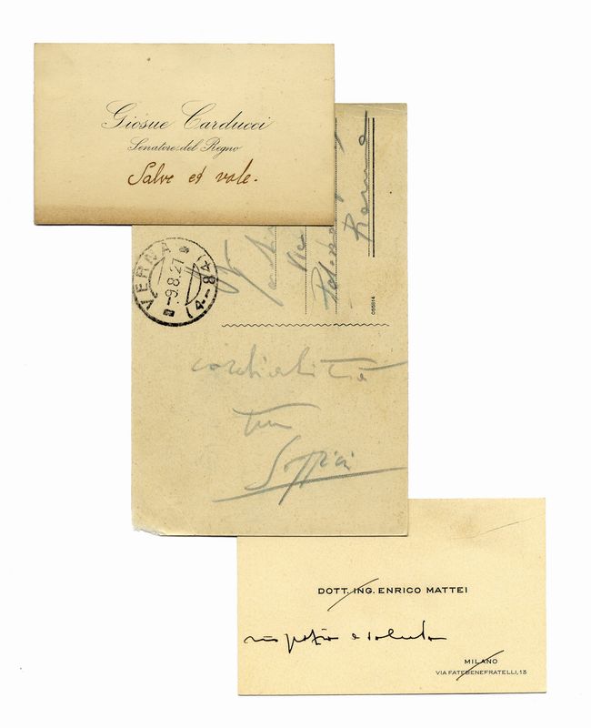 Raccolta di 22 biglietti da visita, e cartoline, alcuni con firme e annotazioni [..]