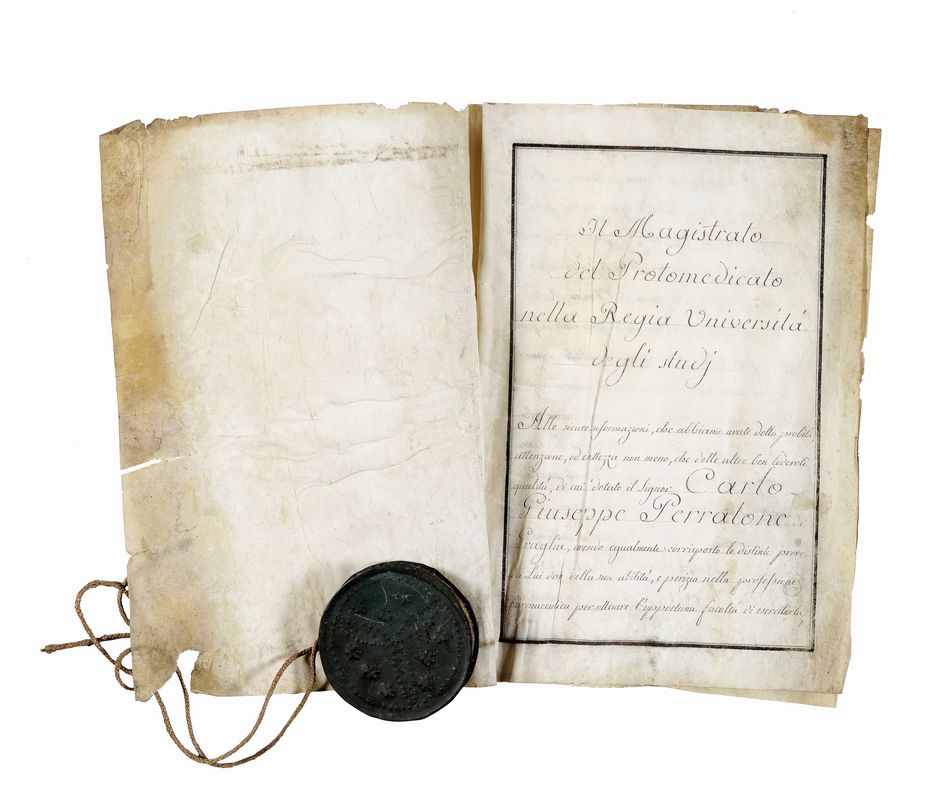 Documenti pergamenacei con intestazioni "Vittorio Amedeo", "Carlo Alberto", "Carlo Felice". Conservati 2 sigilli ceralacca. Spaghi originali conservati. Buono stato di conservazione. Dimensioni varie.