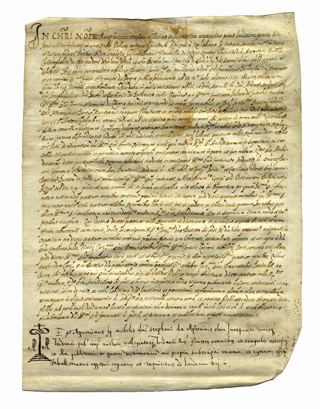 Manoscritti pergamenacei a inchiostro marrone scuro. Testi in latino. Con "signa tabellionum". Dimensioni varie.