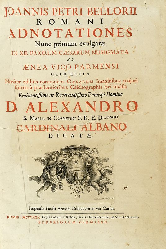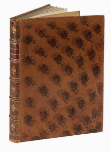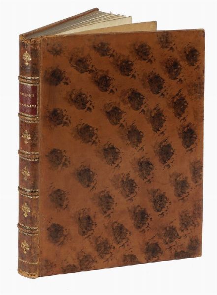 In folio (mm 340x235). Pagine [12], 81, [1] con 84 tavole fuori testo in calcografia legate in fine. Frontespizio inciso a due colori con grande fregio calcografico. Rare macchie ad alcune delle tavole, per il resto buona copia. Legatura in pieno vitello spugnato con titoli in oro su tassello al dorso e decorazioni dorate ai comparti. Tagli spruzzati. Sguardie rinnovate, piccole mancanze lungo le cerniere e alla cuffia superiore. Ex-libris di precedente proprietario al contropiatto anteriore.