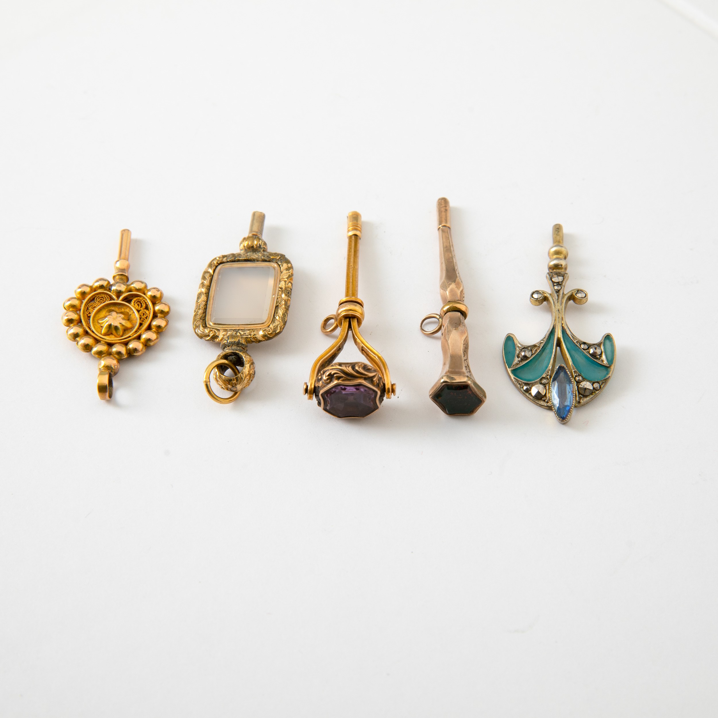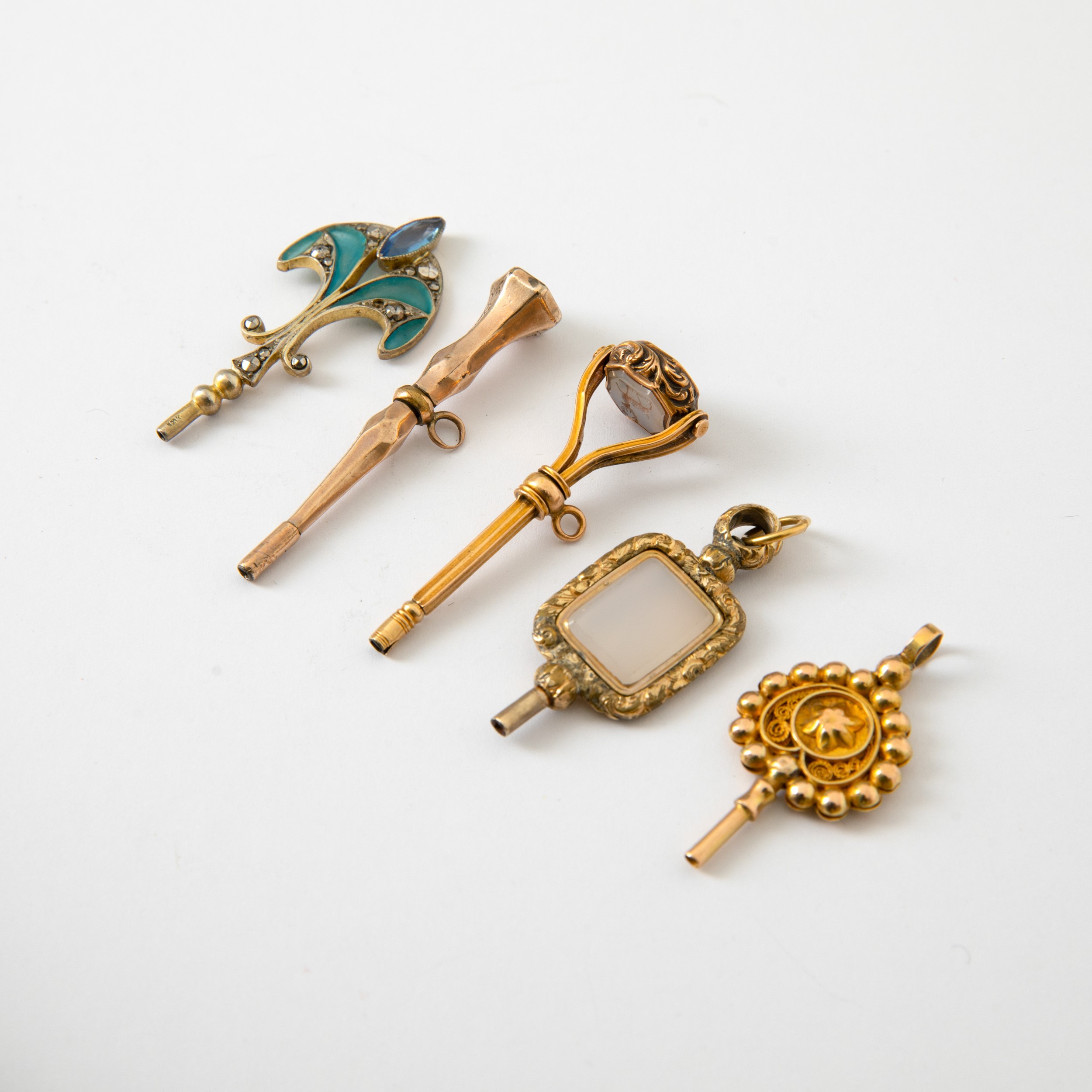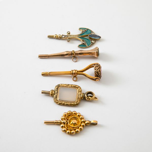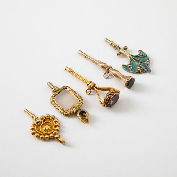 Lotto composto da 5 chiavette per orologio da tasca, di vaio stile e metallo.