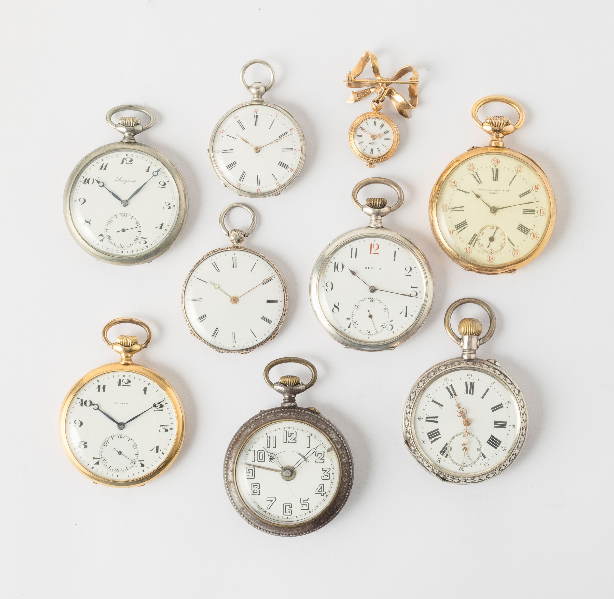 Lotto di nove orologi di cui uno da tasca e uno a spilla