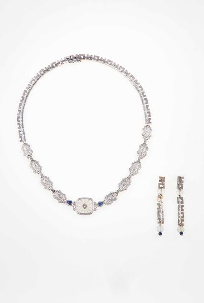 Demi-parure composta da girocollo ed orecchini con cristallo di rocca, diamanti [..]