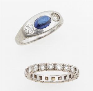 Lotto composto da anello con zaffiro sintetico taglio cabochon e diamanti ed una [..]