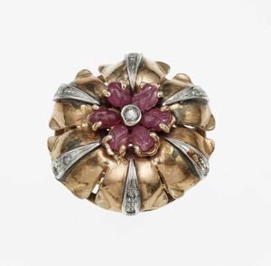 Anello con rubino taglio cabochon e diamanti
