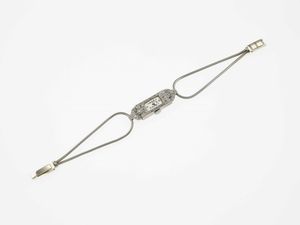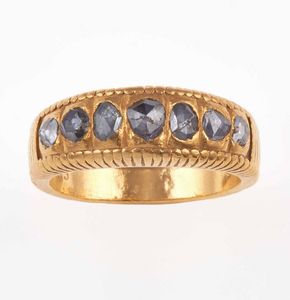 Lotto composto da una spilla, un anello ed un bracciale rigido con diamanti di vecchio [..]