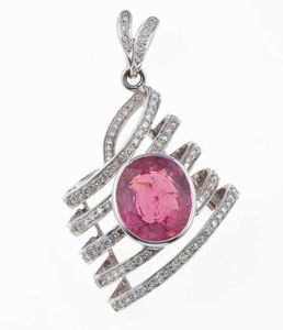 Pendente con rubellite e diamanti