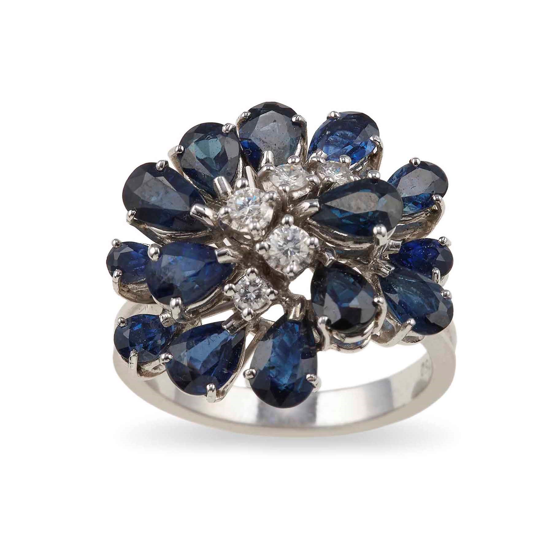 Lotto composto da anello e spilla con diamanti e zaffiri