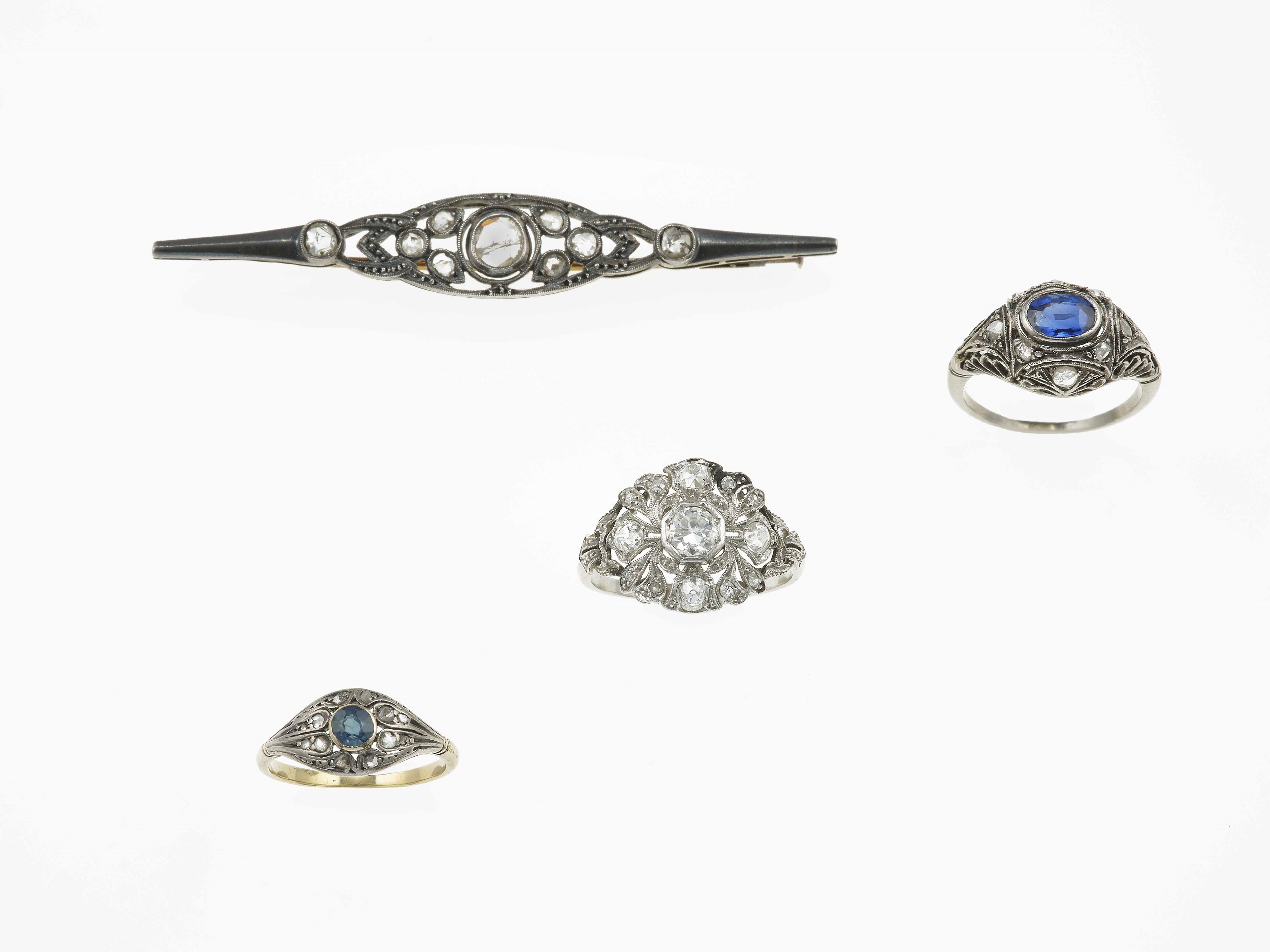 Lotto composto da tre anelli ed una spilla