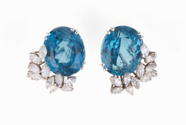 Orecchini con topazi London di ct 35.00 circa e diamanti taglio navette per ct 2.20 [..]