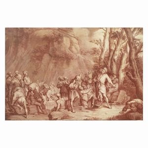 Scuola italiana, sec. XIX DIOGENE GETTA VIA LA SCODELLA olio su tela, cm 131x195,5 Italian school, 19th century [..]