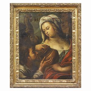 Scuola napoletana sec. XVIII CRISTO E LA SAMARITANA AL POZZO olio su tela, cm 78x60,5 Neapolitan school, 18th [..]