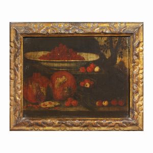 Scuola emiliana, sec. XVIII NATURA MORTA CON MELOGRANI E CILIEGE NATURA MORTA CON VASI DI FIORI, TAPPETO E NAPPA [..]