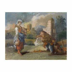 Scuola italiana, sec. XVIII SCENA AGRESTE olio su vetro, cm 20X26 Italian school, 18th century RUSTIC SCENE [..]