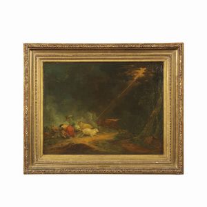 Scuola di Rosa da Tivoli, seconda metà sec. XVII PAESAGGIO CON PASTORI E ARMENTI olio su tela, cm 69x95,5 [..]