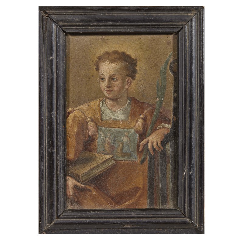 coppia di dipinti ad olio su rame, cm 11,5x8,5