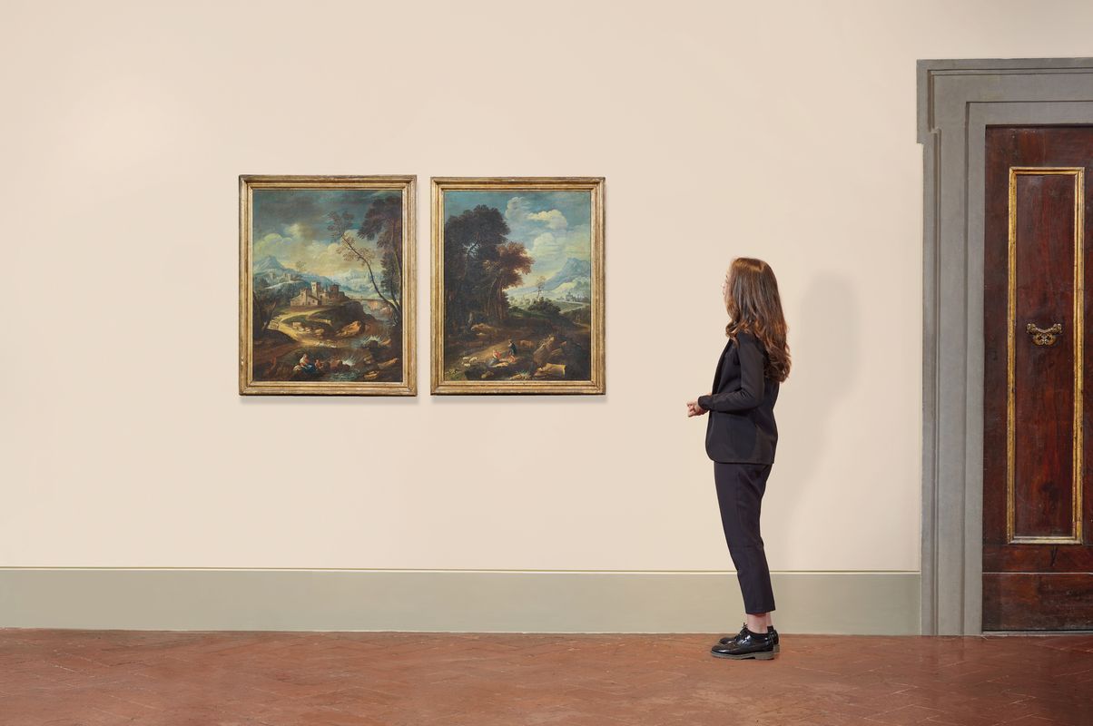 coppia di dipinti, olio su tela, cm 82,5x63,5